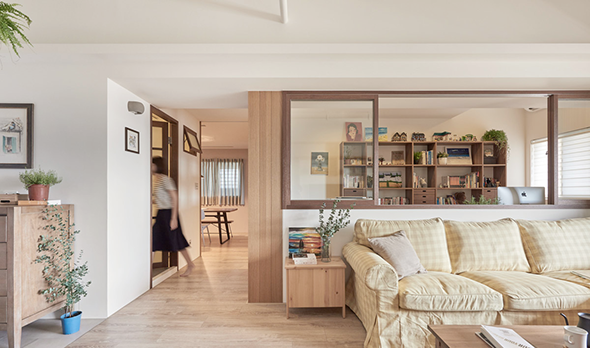 從這些柔和的顏色,東西保持相當中性,白色和木頭構成大部分內部。